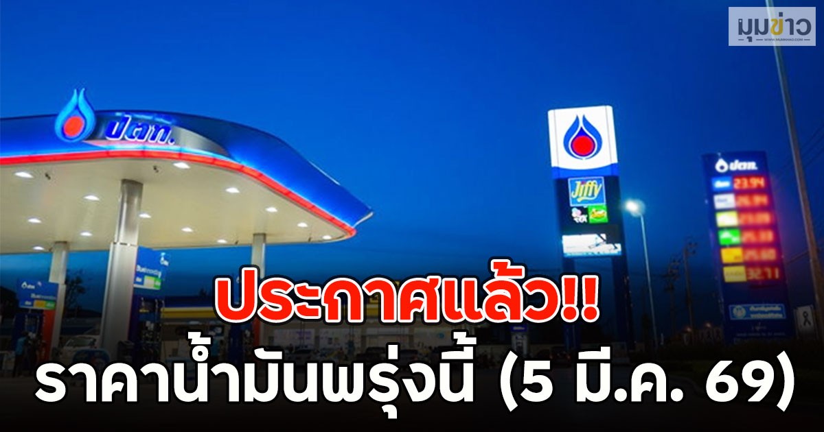 ราคาน้ำมันพรุ่งนี้ (5 มี.ค. 69) บางจาก ปตท. อัปเดตราคาล่าสุด กลุ่มน้ำมันเบนซิน เบนซิน ลิตรละ 39.14 บาท ซุปเปอร์เพาเวอร์ แก๊สโซฮอล์ 95 ลิตรละ 40.04 บาท (โออาร์) แก๊สโซฮอล์…