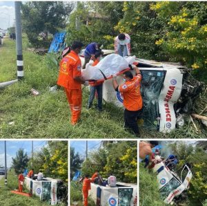 วันที่ 18 ธ.ค. 2568 เวลา 09.00 น. ร.ต.ท.อนุพันธ์ คงประพันธ์ รองสารวัตรเวรสอบสวน สภ.บางพลีน้อย อ.บางบ่อ จ.สมุทรปราการ ได้รับแจ้งเกิดอุบัติเหตุรถบรรทุกพ่วง ขนาด 18 ล้อขับยกดั้มเกี่ยวสะพานลอยคนข้ามหน้าตลาดนำไทย ร่วงลงมาทับรถบรรทุกไข่ไก่และตัวรถบรรทุกพ่วงคันก่อเหตุรวม 2 คัน ทำให้มีผู้เสียชีวิตในที่เกิดเหตุจำนวน 1 ราย ได้รับบาดเจ็บ 1 ราย เหตุเกิดขึ้นบนถนนเทพรัตน (บางนา-ตราด) สาย 34 ด้านฝั่งขาเข้า กทม. ช่วง กม.34 +120 ใกล้กับแนวเขตรอยต่อพื้นที่ระหว่าง จ.ฉะเชิงเทรา และสมุทรปราการ ห่างประมาณ 500 เมตร ม.2 ต.บางพลีน้อย หลังรับแจ้ง จึงเดินทางไปสอบสวน